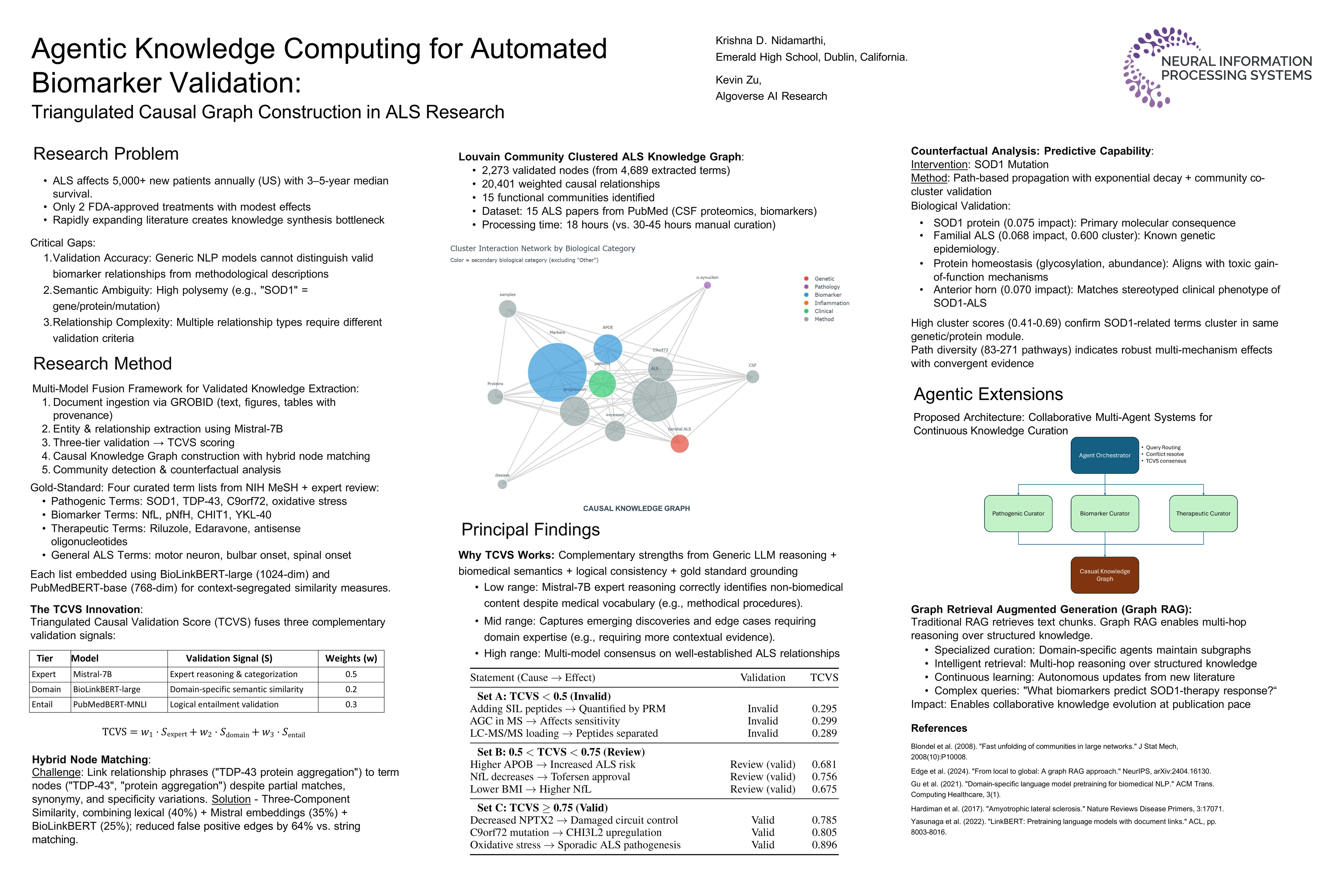 Agentic Knowledge Computing for Automated Biomarker Validation: Triangulated Causal Graph Construction in ALS Research