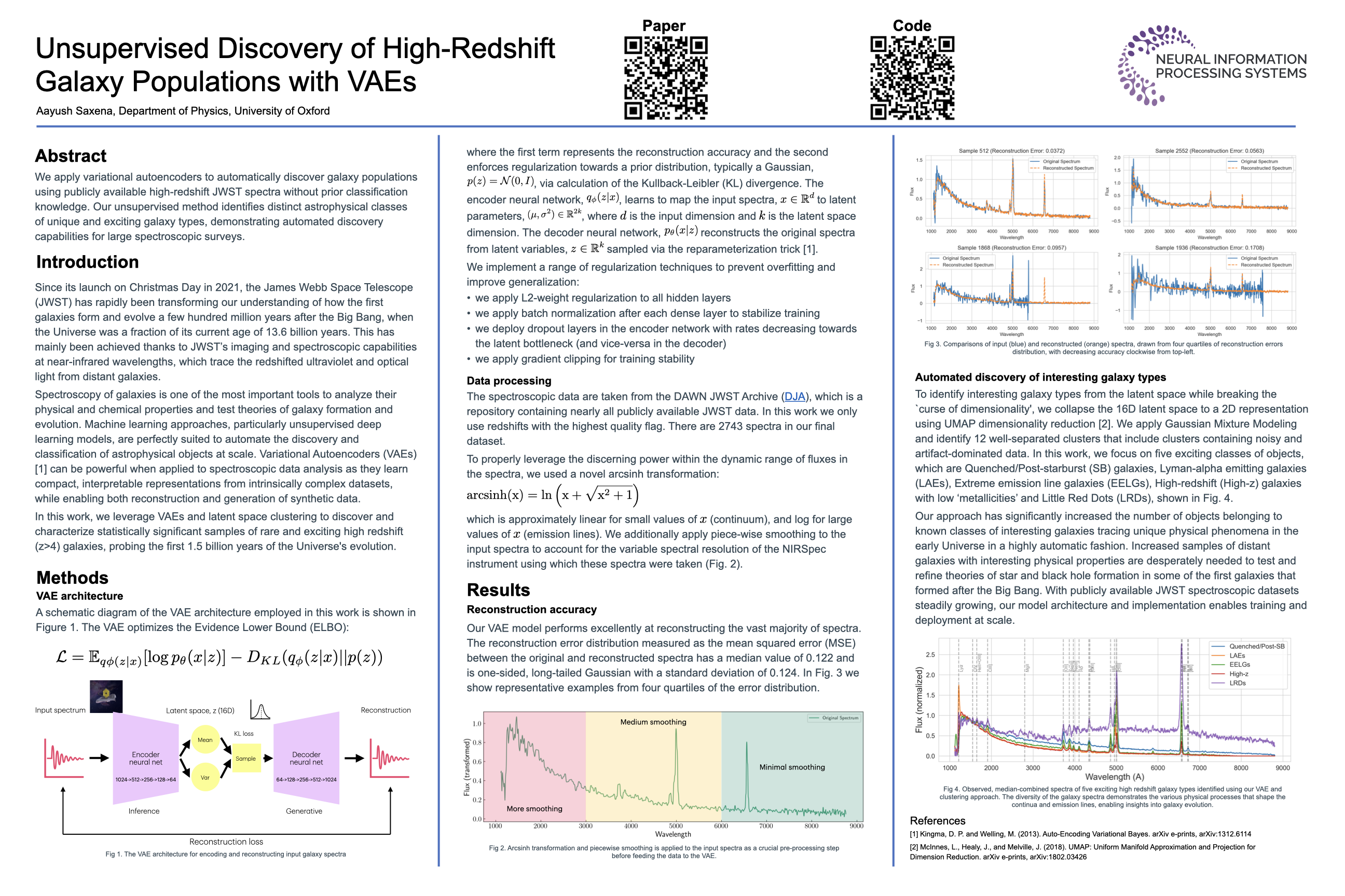 We apply variational autoencoders to automatically discover galaxy populations using publicly available high-redshift \textit{JWST} spectra without prior classification knowledge. Our unsupervised method identifies distinct astrophysical classes of unique and exciting galaxy types, demonstrating automated discovery capabilities for large spectroscopic surveys.