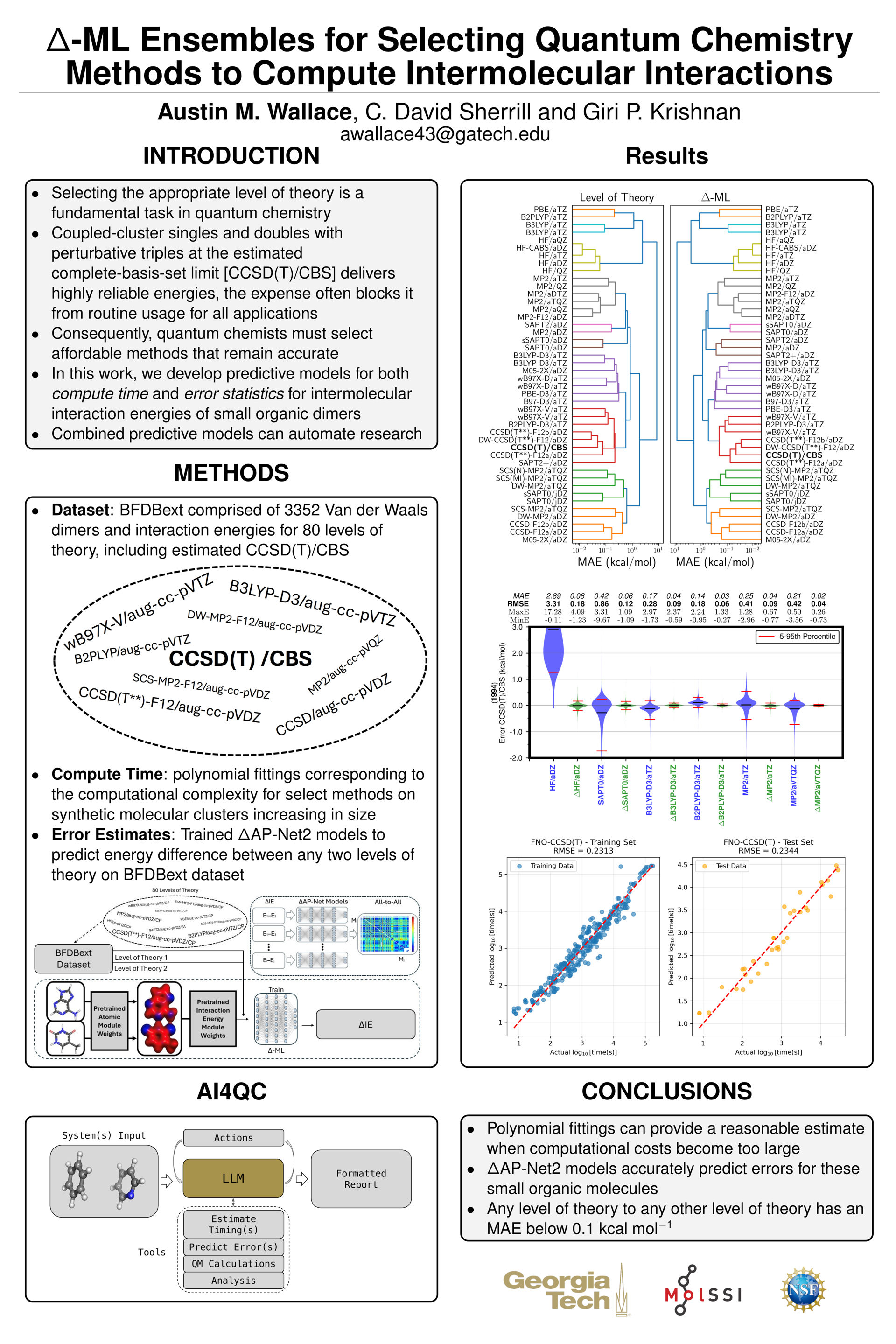 \emph{Ab initio} quantum chemical methods for accurately computing interactions between molecules have a wide range of applications but are often computationally expensive. Hence, selecting an appropriate method based on accuracy and computational cost remains a significant challenge due to varying performance of methods. In this work, we propose a framework based on an ensemble of $\Delta$-ML models trained on features extracted from a pre-trained atom-pairwise neural network to predict the error of each method relative to all other methods including the ``gold standard'' coupled cluster with single, double, and perturbative triple excitations at the estimated complete basis set limit [CCSD(T)/CBS]. Our proposed approach provides error estimates across various theories and identifies the computationally efficient approach for a given error range utilizing only a subset of the dataset. Further, this approach allows comparison between various theories. We demonstrate the effectiveness of our approach using an extended BioFragment dataset, which includes the interaction energies for common biomolecular fragments and small organic dimers. Our results show that the proposed framework achieves very small mean-absolute-errors below 0.1 kcal/mol regardless of the given method. Furthermore, by analyzing all-to-all $\Delta$-ML models for present levels of theory, we identify method groupings that align with theoretical hypotheses, providing evidence that $\Delta$-ML models can easily learn corrections from any level of theory to any other level of theory.