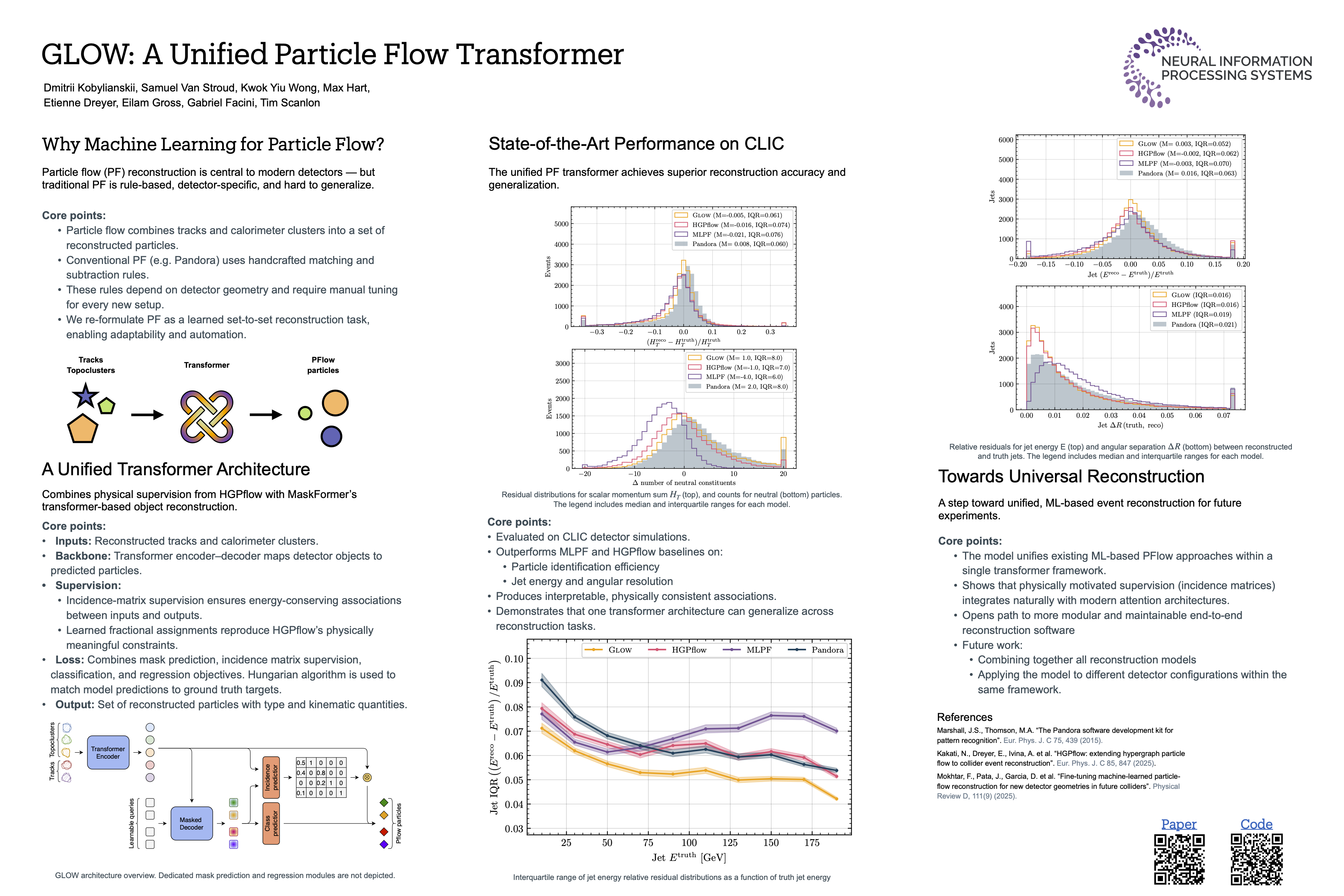 We present GLOW, a transformer-based particle flow model that combines incidence matrix supervision from HGPflow with a MaskFormer architecture. Evaluated on CLIC detector simulations, GLOW achieves state-of-the-art performance and, together with prior work, demonstrates that a single unified transformer architecture can effectively address diverse reconstruction tasks in particle physics.