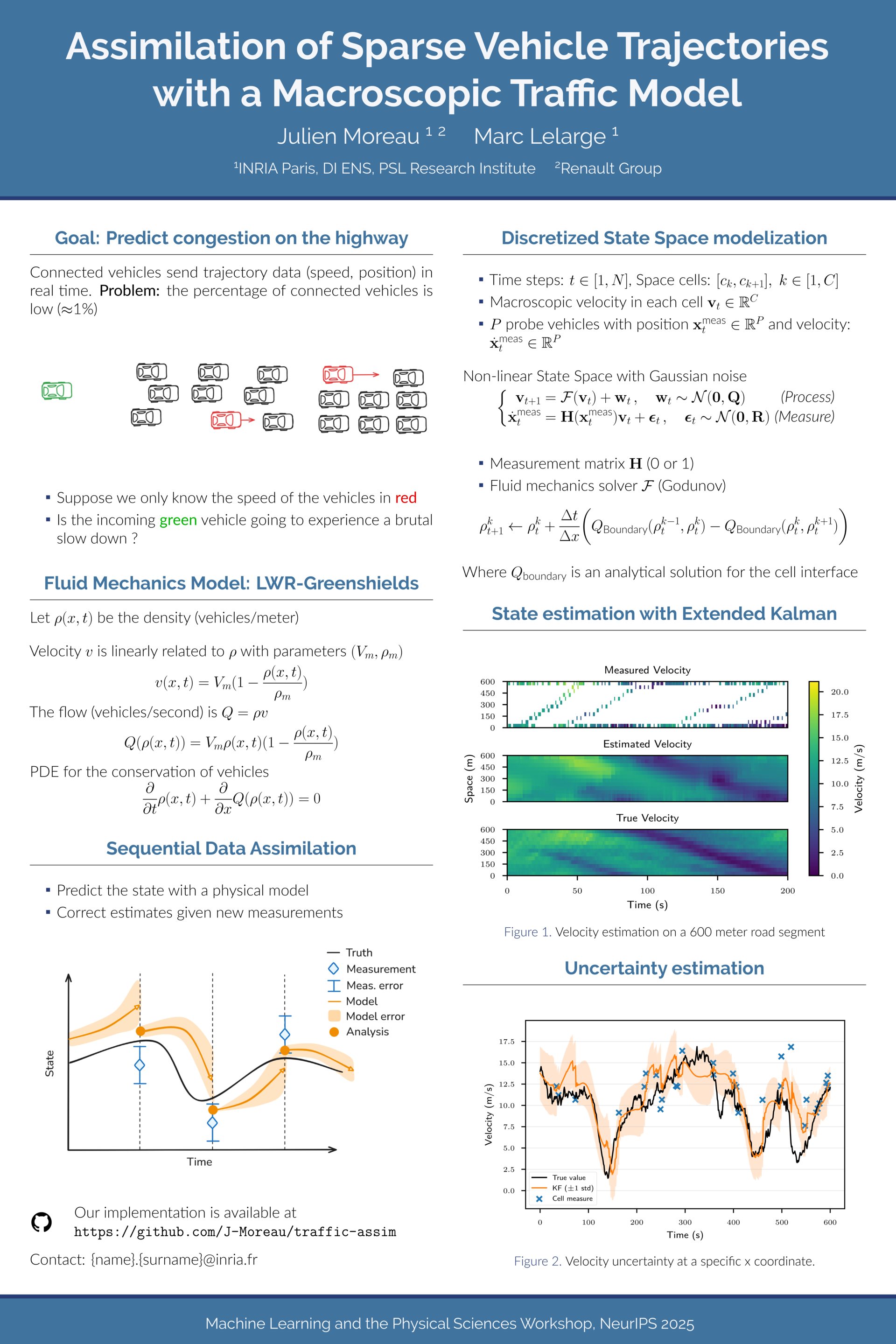 Accurate macroscopic traffic prediction could lead to smarter vehicles and safer roads. It is however dependent on reliable and frequent measurements. Recent research in scientific machine learning has shown progress on reconstruction tasks using probe vehicles, hinting at potential gains for a sequential prediction model. In this work, we adopt the classical data assimilation framework and gather insight on how to design effective predictors. Our results highlight the effectiveness of macroscopic solvers given sparse data while confirming the flexibility of Kalman filtering. However, we report the difficulty of calibrating the solution given the low amount of measures and their high variance.