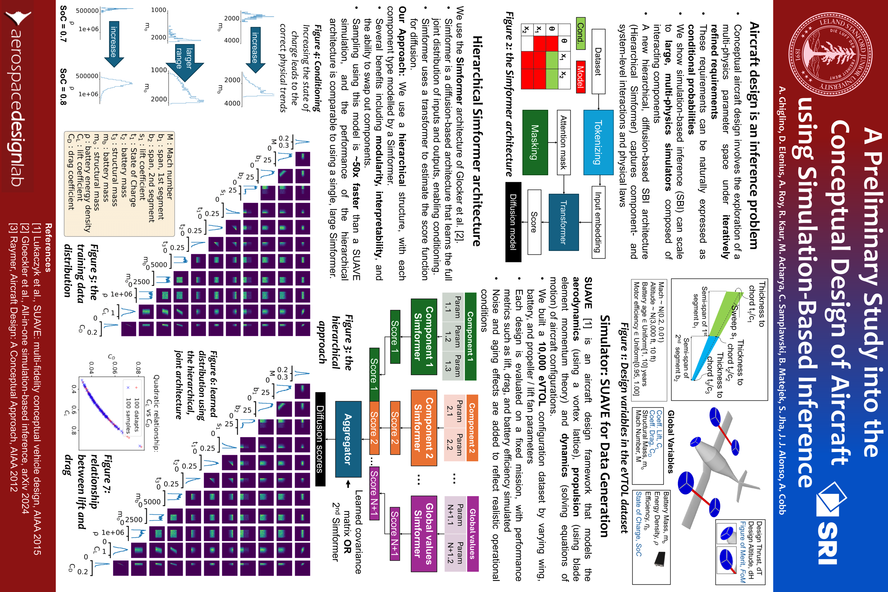 In this paper, we explore the potential of likelihood-free inference for generating conceptual engineering designs of electric vertical take-off and landing (eVTOL) aircraft. As a preliminary study, our goal is to highlight two key findings: (1) simulation-based inference (SBI) can be effectively scaled to a large and complex multi-physics simulator composed of multiple interacting components, where each is governed by different physical principles; and (2) We introduce a new hierarchical diffusion-based SBI method that successfully captures the governing physical laws of conceptual aircraft design. Using conditioning, we show physical laws are captured at both the component level and the system (full aircraft) level, underscoring promise for future research.
