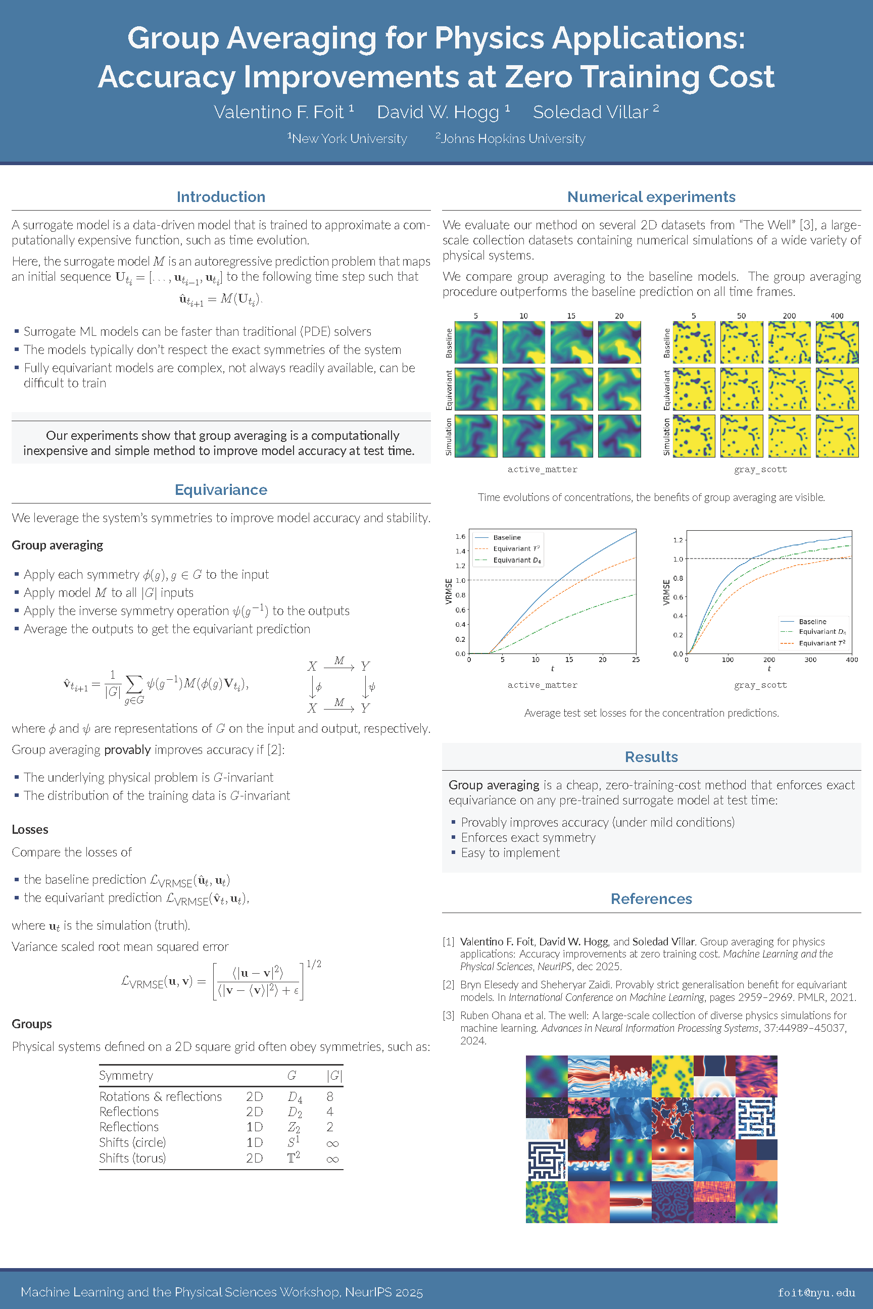 Many machine learning tasks in the natural sciences are precisely equivariant to particular symmetries.Nonetheless, equivariant methods are often not employed, perhaps because training is perceived to be challenging, or the symmetry is expected to be learned, or equivariant implementations are seen as hard to build.Group averaging is an available technique for these situations.It happens at test time; it can make any trained model precisely equivariant at a (often small) cost proportional to the size of the group; it places no requirements on model structure or training.It is known that, under mild conditions, the group-averaged model will have a provably better prediction accuracy than the original model.Here we show that an inexpensive group averaging can improve accuracy in practice.We take well-established benchmark machine learning models of differential equations in which certain symmetries ought to be obeyed.At evaluation time, we average the models over a small group of symmetries.Our experiments show that this procedure always decreases the evaluation loss, with average improvements of up to 47\% in terms of the VRMSE.The averaging produces visually better predictions for continuous dynamics, but some sharp features can be blurred(this suggests investigating other averages, such as Wasserstein barycenters).This short paper shows that, under certain common circumstances, there are no disadvantages to imposing exact symmetries; the ML4PS community should consider group averaging as a cheap and simple way to improve model accuracy.