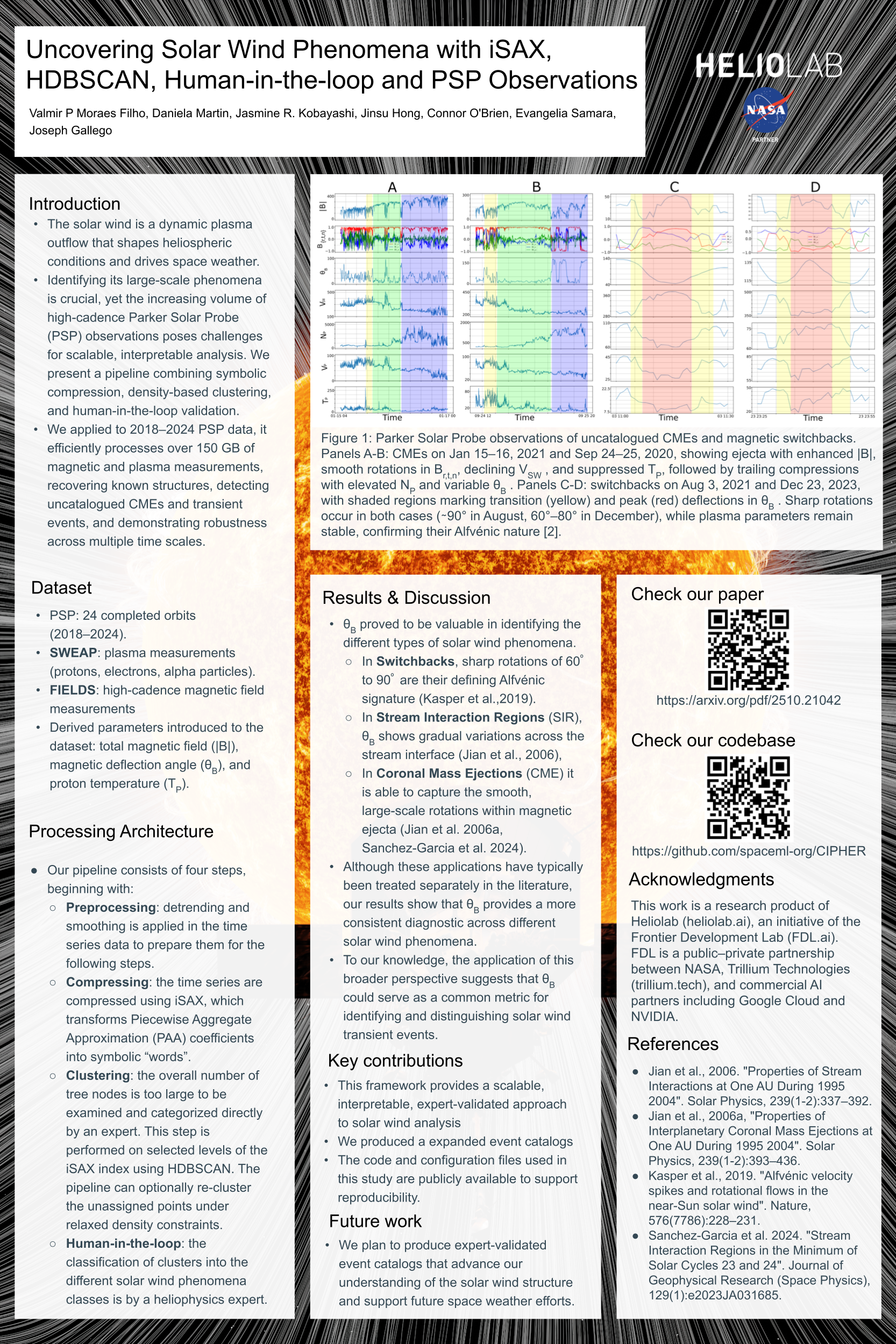 The solar wind is a dynamic outflow of plasma that shapes the heliospheric conditions and drives space weather phenomena. Identifying its large-scale phenomena is essential for understanding solar events that impact the near-Earth environment. However, the growing volume of high-cadence observations from Parker Solar Probe (PSP) poses a challenge for scalable and interpretable analysis. We introduce a pipeline that combines symbolic compression and indexing, unsupervised density-based clustering, and human-in-the-loop validation. Applied to 2018-2024 PSP measurements, this framework efficiently processes over 150 GB of magnetic and plasma data, reducing computational cost while preserving physical interpretability. The method successfully recovers known solar wind structures, identifies uncatalogued CMEs and transient events, and demonstrates robustness across multiple time scales. A key outcome is the systematic use of the magnetic deflection angle ($\theta_B$), which emerges as a unifying diagnostic for these phenomena. This pipeline establishes a scalable, interpretable, and expert-validated approach to solar wind analysis. By producing expanded event catalogs, it advances our understanding of heliospheric variability and provides a foundation for future space weather forecasting in the era of large in situ datasets.