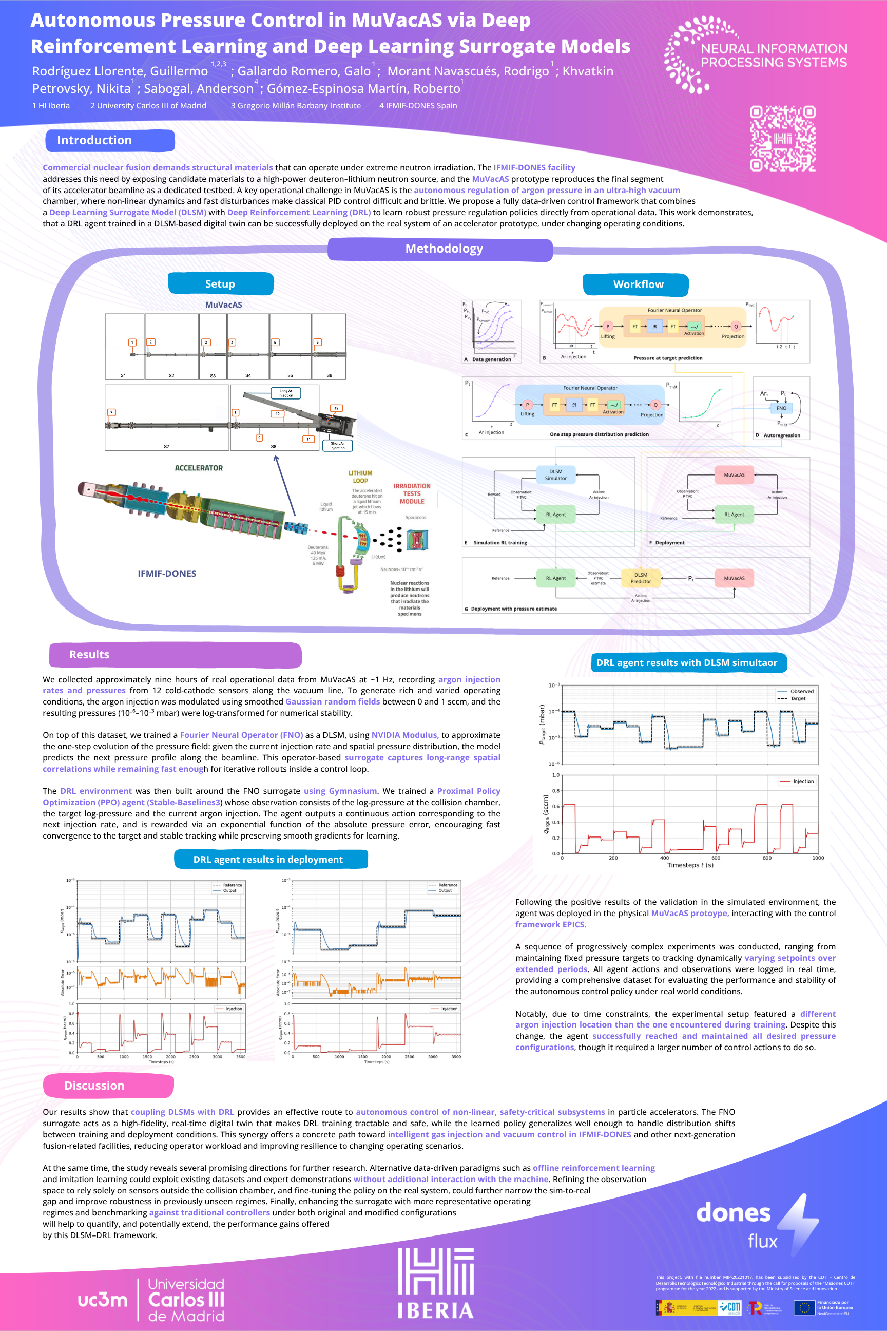 The development of nuclear fusion requires materials that can withstand extreme conditions. The IFMIF-DONES facility, a high-power particle accelerator, is being designed to qualify these materials. A critical testbed for its development is the MuVacAS prototype, which replicates the final segment of the accelerator beamline. Precise regulation of argon gas pressure within its ultra-high vacuum chamber is vital for this task. This work presents a fully data-driven approach for autonomous pressure control. A Deep Learning Surrogate Model, trained on real operational data, emulates the dynamics of the argon injection system. This high-fidelity digital twin then serves as a fast-simulation environment to train a Deep Reinforcement Learning agent. The results demonstrate that the agent successfully learns a control policy that maintains gas pressure within strict operational limits despite dynamic disturbances. This approach marks a significant step toward the intelligent, autonomous control systems required for the demanding next-generation particle accelerator facilities.