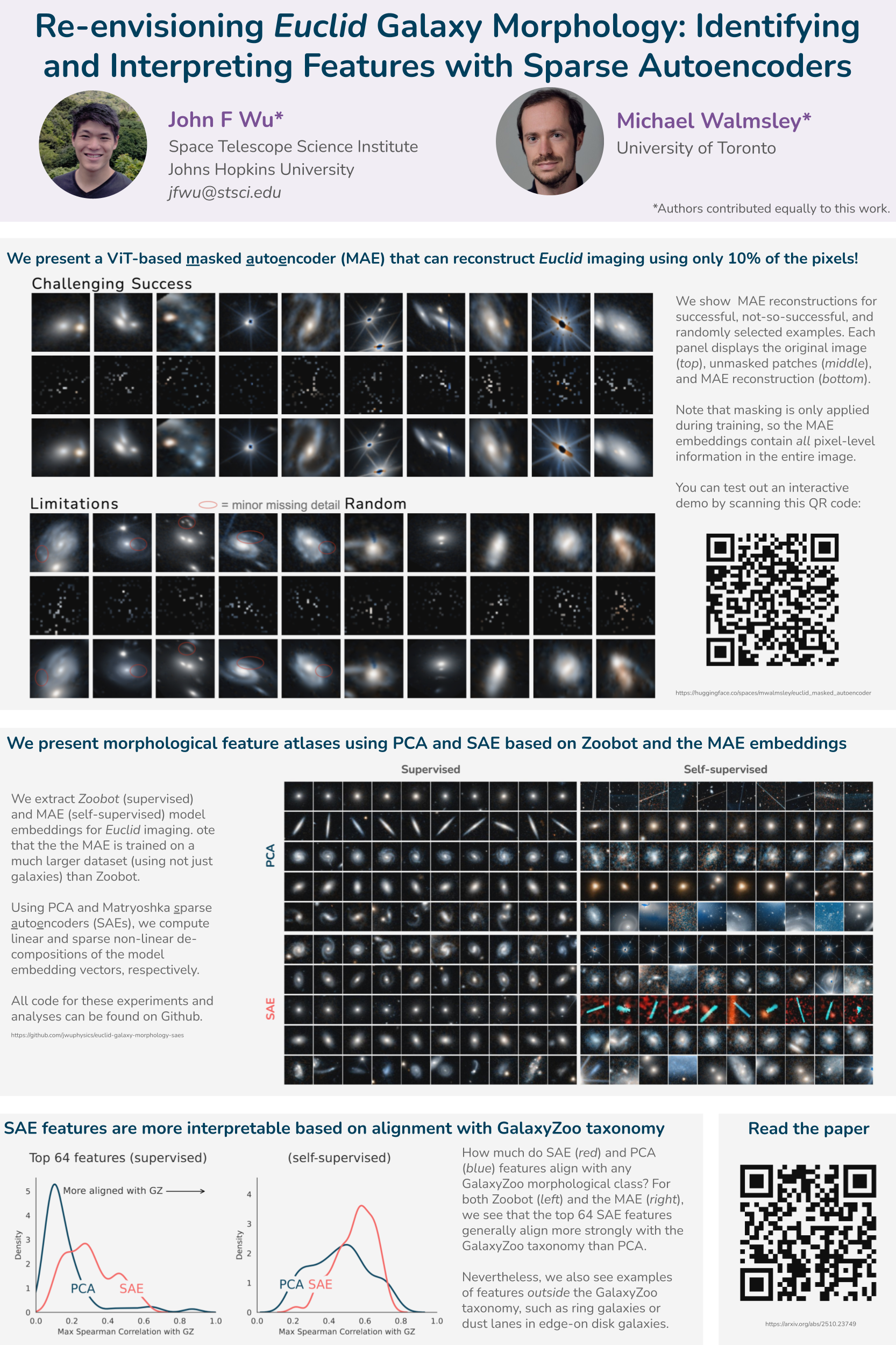 Sparse Autoencoders (SAEs) can efficiently identify candidate monosemantic features from pretrained neural networks for galaxy morphology. We demonstrate this on Euclid Q1 images using both supervised (Zoobot) and new self-supervised (MAE) models. Our publicly released MAE achieves superhuman image reconstruction performance. While a Principal Component Analysis (PCA) on the supervised model primarily identifies features already aligned with the Galaxy Zoo decision tree, SAEs can identify interpretable features outside of this framework. SAE features also show stronger alignment than PCA with Galaxy Zoo labels. Although challenges in interpretability remain, SAEs provide a powerful engine for discovering astrophysical phenomena beyond the confines of human-defined classification.