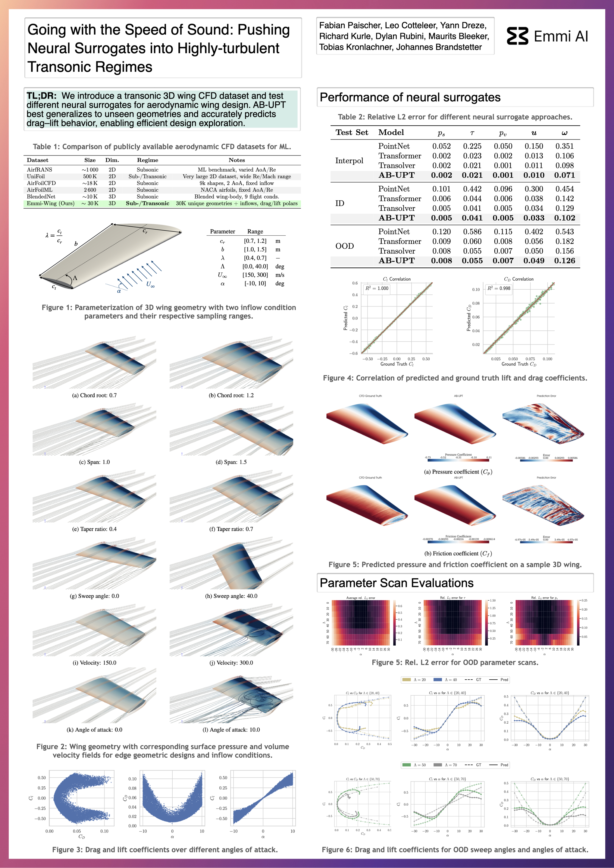 The widespread use of neural surrogates in automotive aerodynamics, enabled by datasets like DrivAerML and DrivAerNet++, has focused on bluff bodies with large wakes. However, applying these techniques to aerospace, especially in the complex transonic regime, is challenging due to phenomena like 3D wingtip vortices. Existing aerospace datasets are often limited to 2D airfoils and neglect these critical 3D effects. To bridge the gap, we introduce a new dataset of 3D wings, which, to our knowledge, is the first of its kind to provide comprehensive 3D data for this regime. Our dataset contains over 30,000 samples, generated by varying five geometric and two inflow parameters. We benchmark the performance of neural surrogates such as Transolver and AB-UPT against traditional $k-\omega$ SST simulations to assess their capabilities for transonic aerodynamic applications.