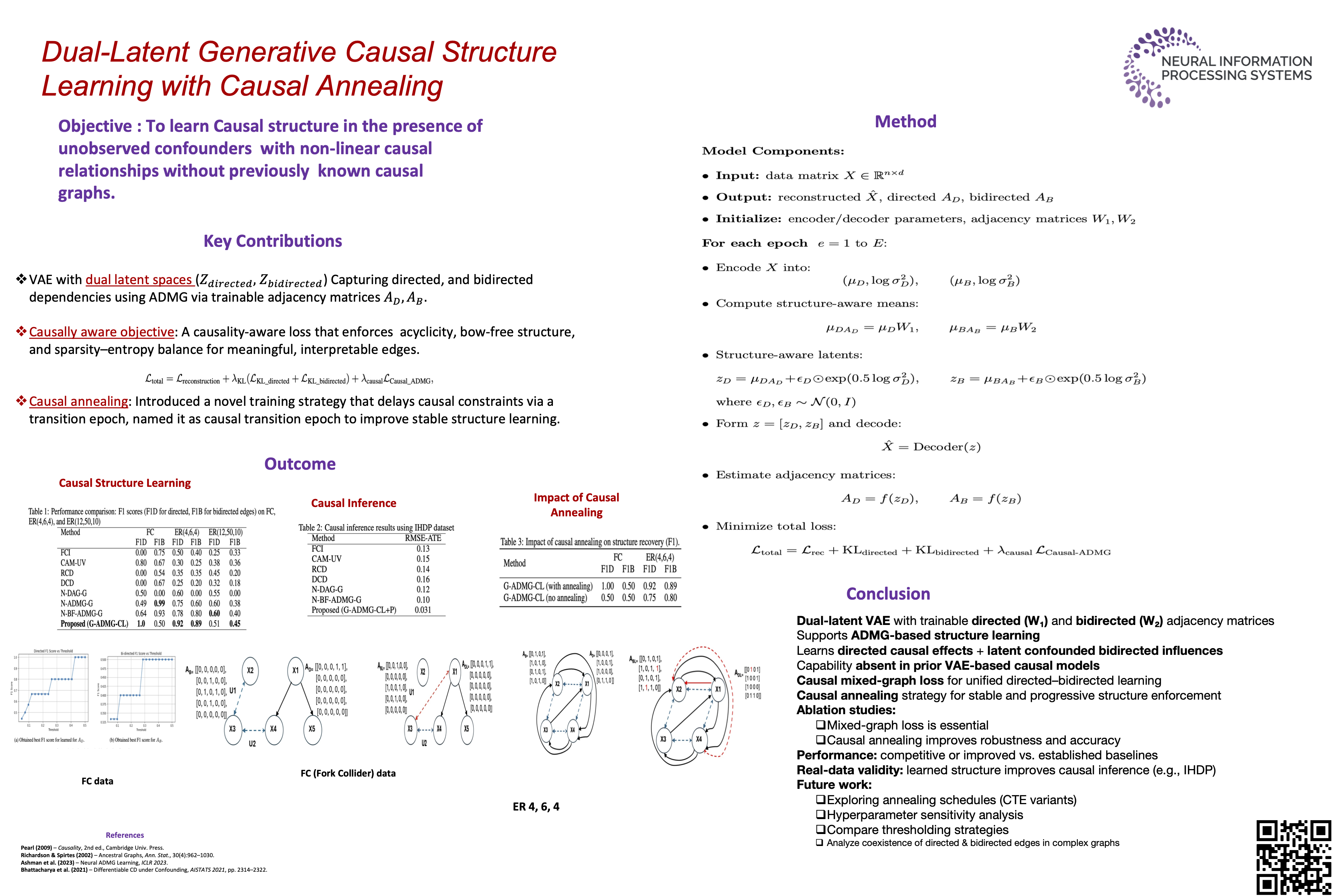 We explore causal structure learning with unobserved confounders, represented by Acyclic Directed Mixed Graphs, where directed edges indicate observed cause-effect relationships and bidirected edges capture unobserved confounding. Previous methods have focused on search-based approaches or flow-based generative models.In contrast, we propose a novel variational autoencoder framework with dual latent spaces, each associated with a trainable adjacency matrix to capture directed and bidirected edges, respectively. We propose a causality constraint and introduce a causal annealing strategy during training to obtain meaningful causal graph structures.Experiments show competitive identification of both relationship types on synthetic data, with learned structures enhancing downstream causal inference in a real-world task.