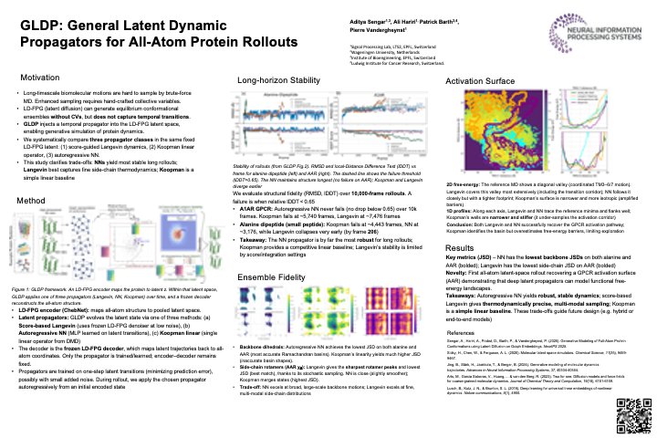 Simulating the long-timescale dynamics of biomolecules is a central challenge in computational science. While enhanced sampling methods can accelerate these simulations, they rely on pre-defined collective variables that are often difficult to identify. A recent generative model, LD-FPG, demonstrated that this problem could be bypassed by learning to sample the static equilibrium ensemble as all-atom deformations from a reference structure, establishing a powerful method for all-atom ensemble generation. However, while this approach successfully captures a system's probable conformations, it cannot simulate the dynamic pathways or kinetics of transitioning between them. Here we extend LD-FPG with a temporal propagator that operates within the learned latent space and compare three classes: (i) score-guided Langevin dynamics, (ii) Koopman-based linear operators, and (iii) autoregressive neural networks. Within a unified encoder–propagator–decoder framework, we evaluate long-horizon stability, backbone and side-chain ensemble fidelity, and functional free-energy landscapes. Autoregressive neural networks deliver the most robust long rollouts; score-guided Langevin best recovers side-chain thermodynamics when the score is well learned; and Koopman provides an interpretable, lightweight baseline that tends to damp fluctuations. These results clarify the trade-offs among propagators and offer practical guidance for latent-space simulators of all-atom protein dynamics.