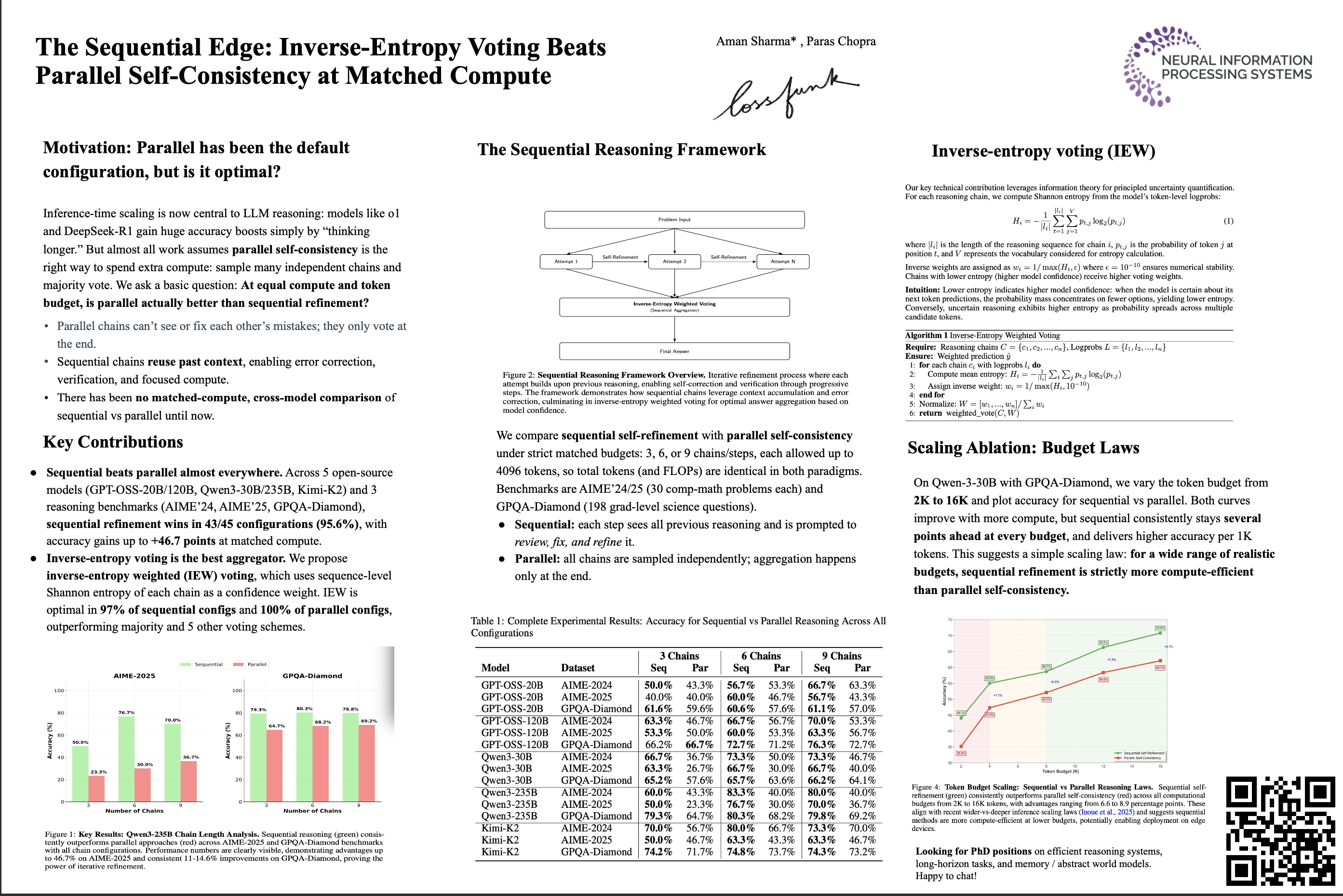 The Sequential Edge: Inverse-Entropy Voting Beats Parallel Self-Consistency at Matched Compute