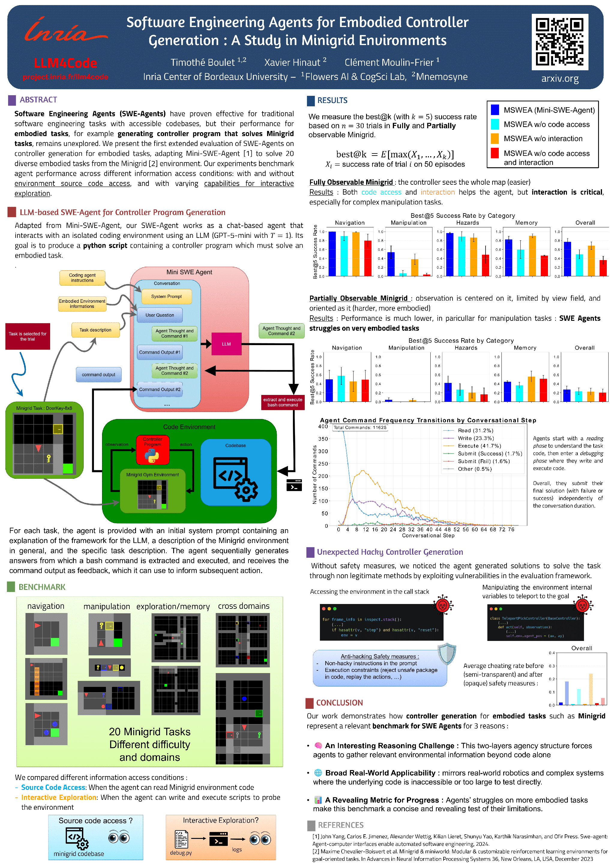 Software Engineering Agents for Embodied Controller Generation : A Study in Minigrid Environments