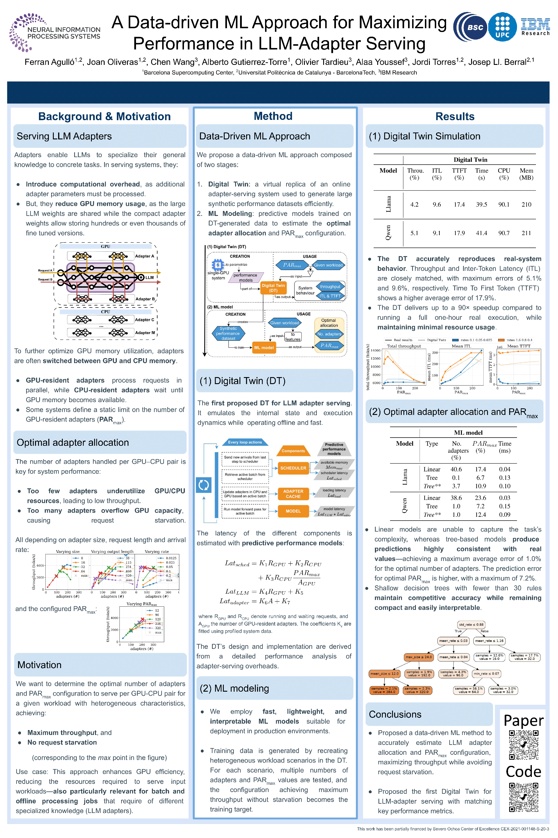 With the rapid adoption of Large Language Models (LLMs), LLM-adapters have become increasingly common, providing lightweight specialization of large-scale models. Serving hundreds or thousands of these adapters on a single GPU allows request aggregation, increasing throughput, but may also cause request starvation if GPU memory limits are exceeded. To address this issue, this study focuses on determining the joint configuration of concurrent and parallel adapters that maximizes GPU throughput without inducing starvation, given heterogeneous adapter and traffic properties. We propose a data-driven ML approach leveraging interpretable models to tackle this caching problem and introduce the first Digital Twin capable of reproducing an LLM-adapter serving system, enabling efficient training data generation. Experiments with the vLLM framework and LoRA adapters show that the Digital Twin reproduces throughput within 5.1\% of real results, while the ML approach predicts optimal numbers of concurrent and parallel adapters with an error of at most 7.2\% under heterogeneous, real-world workloads.
