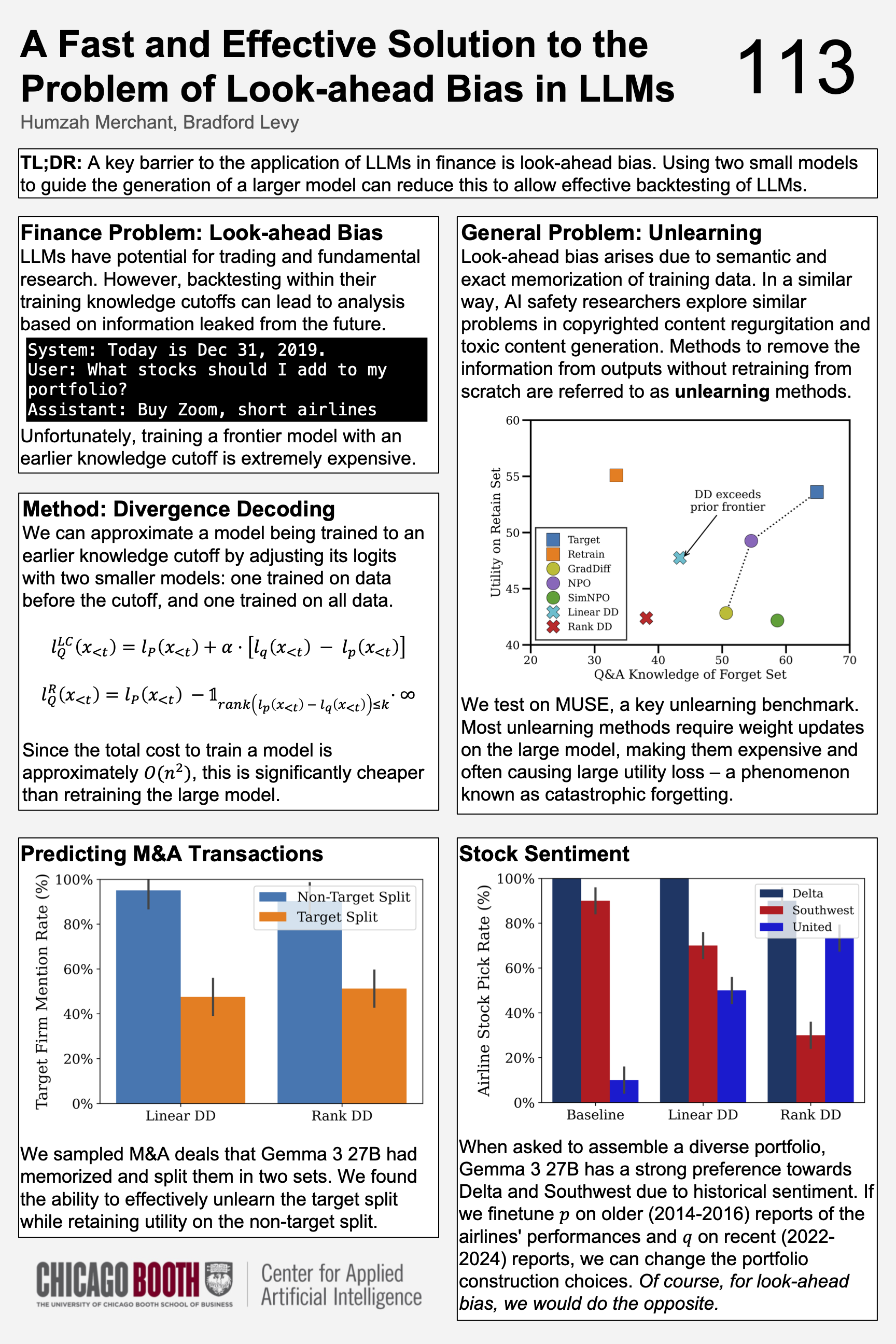 Applying LLMs to predictive tasks in finance is challenging due to look-ahead bias resulting from their training on long time-series data. This precludes the backtests typically employed in finance since retraining frontier models from scratch with a specific knowledge cutoff is prohibitive. In this paper, we introduce a fast, effective, and low-cost alternative. Our method guides generation at inference time by adjusting the logits of a large base model using a pair of smaller, specialized models—one fine-tuned on information to be forgotten and another on information to be retained. We demonstrate that our method effectively removes both verbatim and semantic knowledge, corrects biases, and outperforms prior methods.