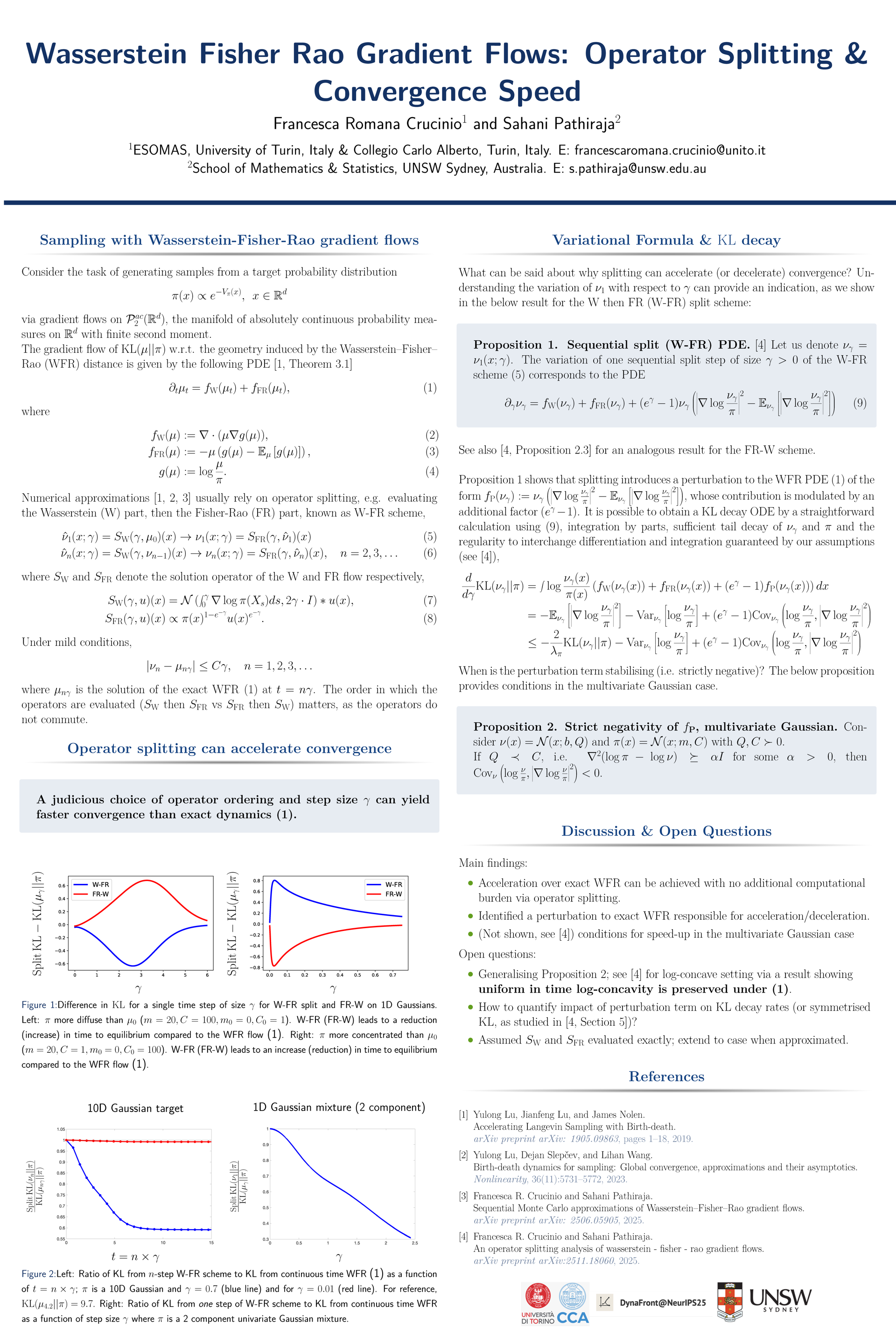 Wasserstein-Fisher-Rao (WFR) gradient flows have been recently proposed as a powerful sampling tool that combines the advantages of pure Wasserstein (W) and pure Fisher-Rao (FR) gradient flows. Existing algorithmic developments implicitly make use of operator splitting techniques to numerically approximate the WFR partial differential equation, whereby the W part is evaluated over a given step size and then the FR part (or vice versa). This works investigates the impact of the order in which these operations are performed and aims to provide a quantitative analysis. It is shown that a judicious choice of order and step size can reduce time to equilibrium compared to the continuous time WFR flow. Several open questions are discussed.