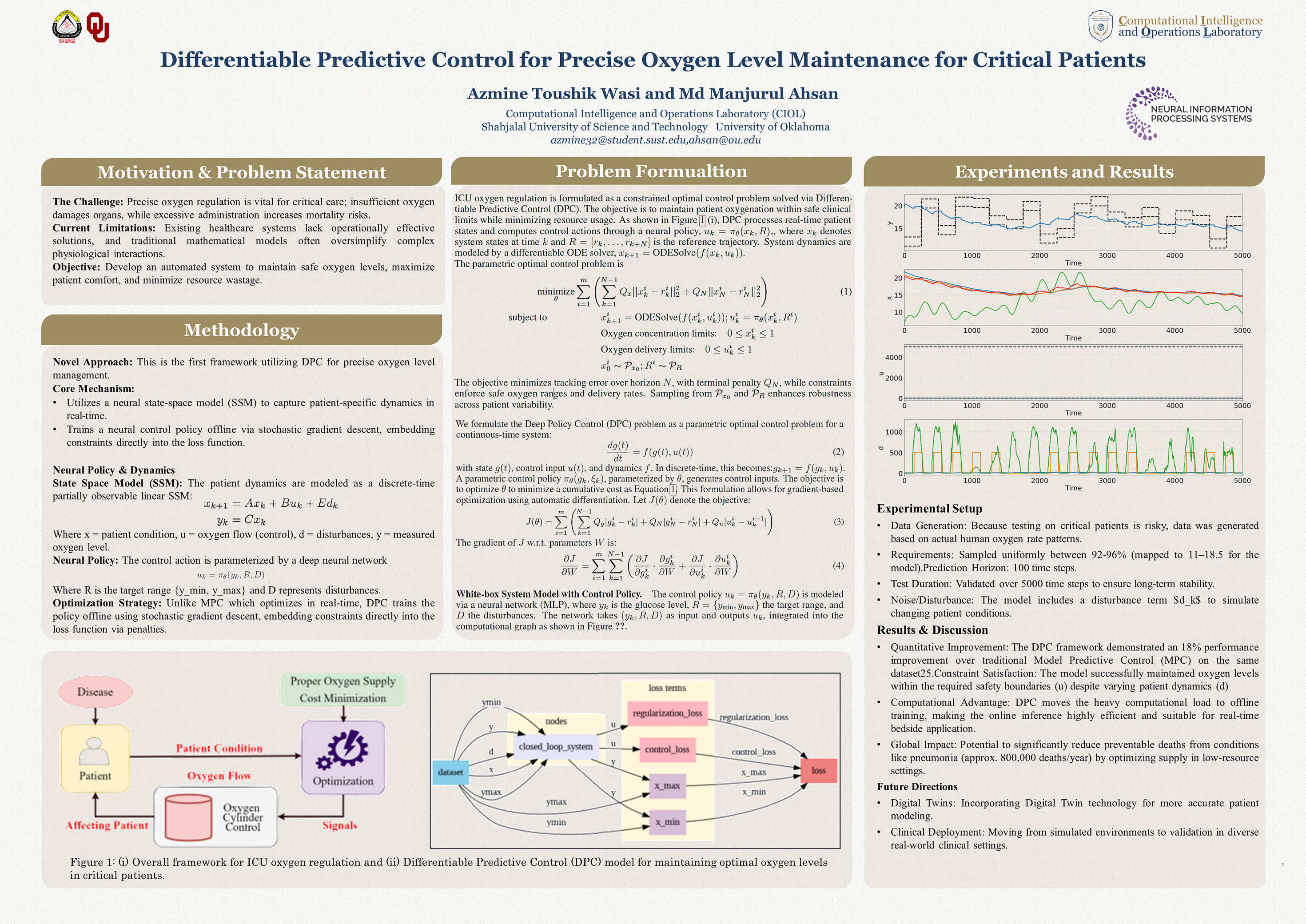 Precisely managing oxygen levels is crucial for patients with critical illnesses, helping to prevent a wide range of severe conditions and physical harm. Despite its importance, current healthcare systems lack operationally effective and efficient solutions for oxygen level maintenance. To address this gap, we present the first-ever framework for precise oxygen level management using Differentiable Predictive Control (DPC). By employing a sophisticated neural policy and leveraging the differentiable nature of the system model, DPC fine-tunes oxygen delivery based on patient-specific conditions with high accuracy. This end-to-end automated system continuously monitors real-time patient data to optimize oxygen flow, maximizing comfort while minimizing waste. Our approach not only enhances patient care but also improves resource efficiency and reduces costs in critical care settings. Empirical results further demonstrate the robustness and effectiveness of our model.
